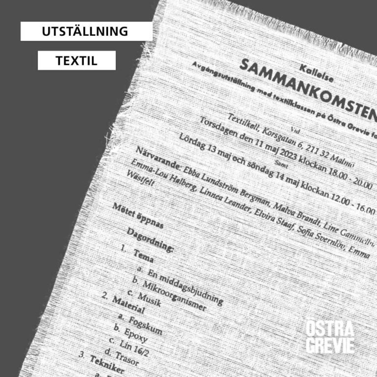 Varmt välkomna till Sammankomsten. Textil Konst och Design på Östra Grevie Folkhögskola kallar till ett sista möte för att summera sina två år på skolan.