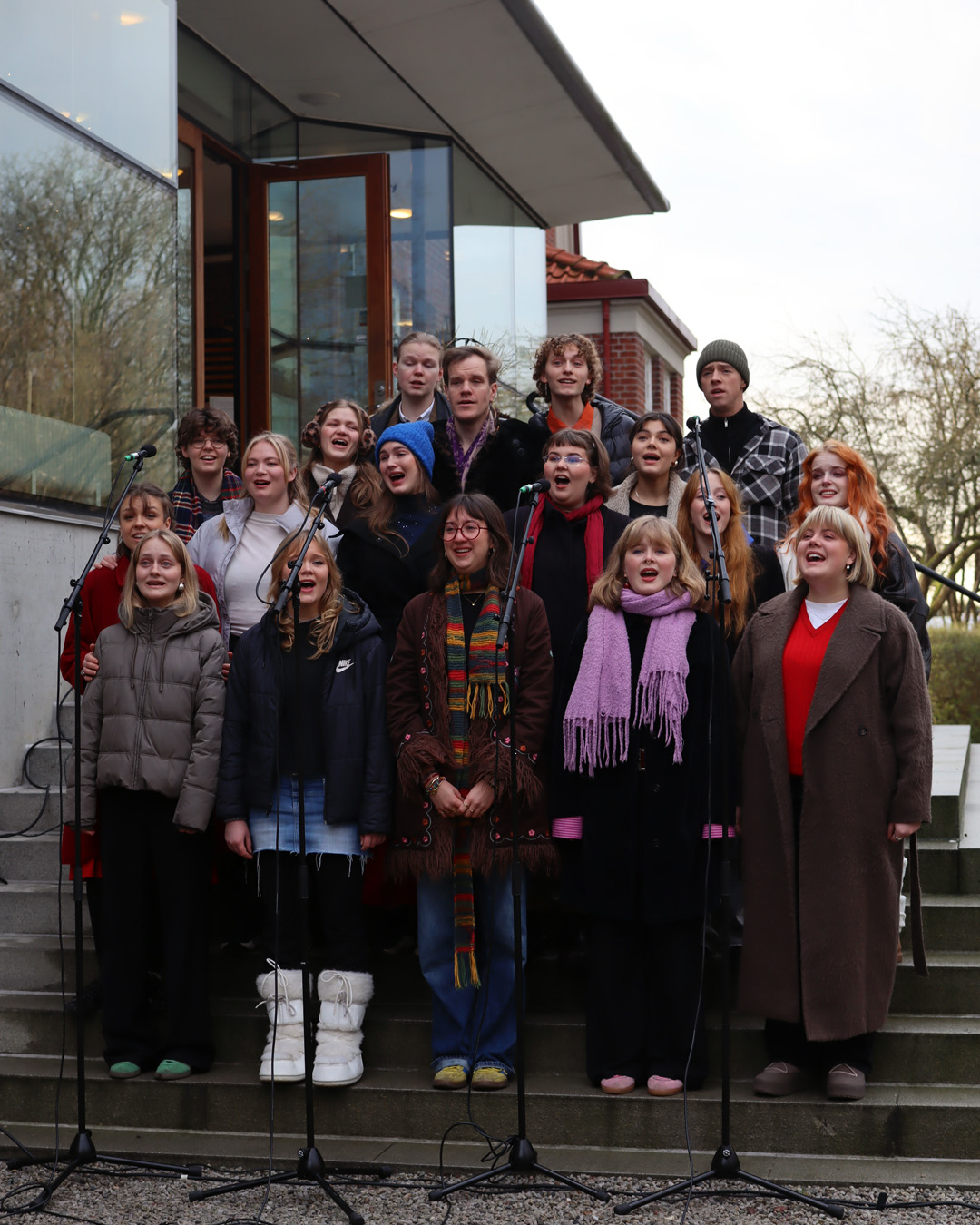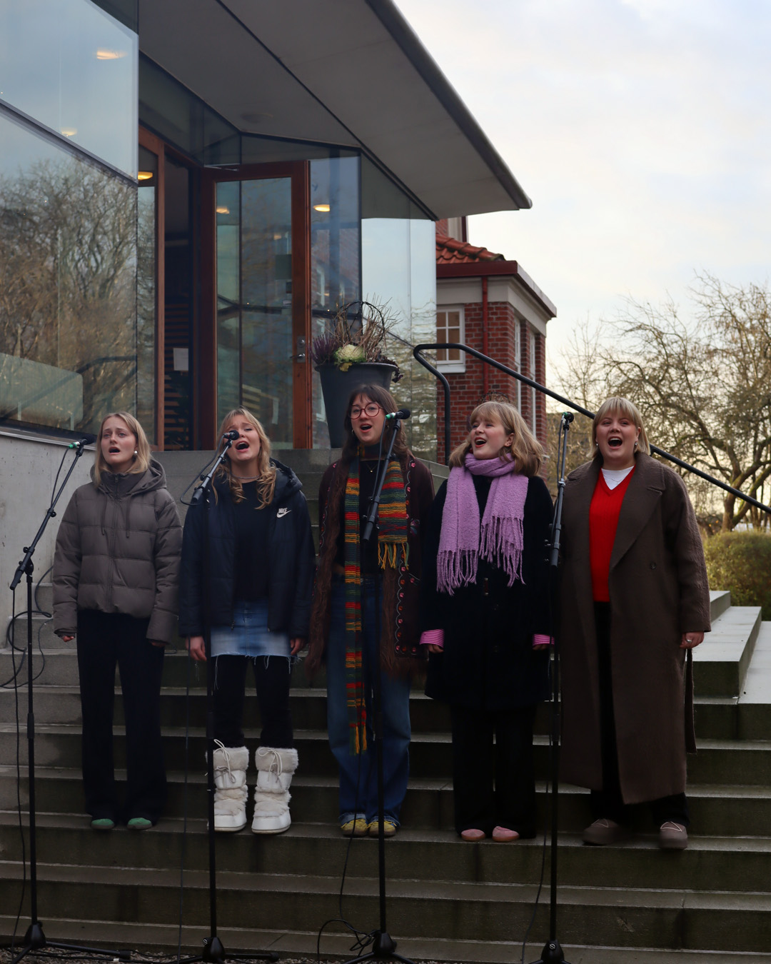 Under skolans julavslutning möttes vi alla upp ute på trappan till huvudbyggnaden, där vi bjöds på sång, känslor och improvisation.